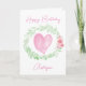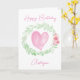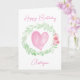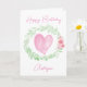 Una laurel de color agua verde y flores rosas con un corazón de acuarela rosa que aparece en la parte delantera de esta tarjeta de cumpleaños personalizada para ella. Podrás personalizar fácilmente el frente con su nombre y mensaje de cumpleaños dentro. Esto haría una maravillosa tarjeta de cumpleaños para ella.