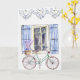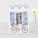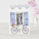 Una ventana de bonito con una bicicleta y una cesta con lavanda.