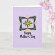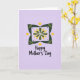 Designed with a soft lavender background, this digital artwork centers on a symmetrical botanical emblem that feels like spring flowers opening toward one another with a gentle, affectionate closeness ❤️. A deep forest-green frame curls into four petal-like arms, each tipped with lighter olive leaf accents that add a tender, caring touch. Inside that frame, stylized leaves and petals radiate in a balanced pattern, alternating bright lime green and warm golden yellow like two friends sharing attention back and forth. Four small yellow diamond shapes sit at the top, bottom, left, and right of the central motif, adding a calm, steady rhythm to the layout 🌼. The main message, “Happy Mother’s Day,” is placed beneath the emblem and written in flowing black lettering. The lavender field stays airy and soft so the greens and yellows stand out without feeling harsh. The central design reads like a tile-inspired floral medallion with curved green petals, lime-and-gold inner leaves, and four yellow diamonds marking the cardinal points.