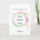 Un laurel de acuarela y un lazo coqueto de flores rosas para el 1er Día de la Madre para ella, que podrás personalizar fácilmente en la parte frontal con su nombre. El mensaje interior de esta bonita tarjeta del 1er Día de la Madre expresa un mensaje sincero, que también puedes personalizar si lo deseas. Un bonito recuerdo del Día de la Madre para hija, nuera, hermana, etc.