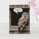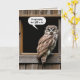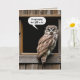 Lechuza con anteojos enmarcados en negro en una rústica ventana de granero por 50 años