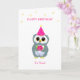 Tarjeta Lechuza con flores y deseos de cumpleaños en blanc