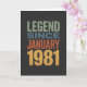 Tarjeta Legend Since January 1981 Retro Birthday Classic