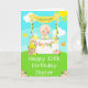 Esta tierna y caprichosa tarjeta de cumpleaños puede ser personalizada con un nombre o título como hija, nieta, sobrina, amiga, etc. Cuenta con un chica de pelo rubio con piel clara en un puesto de limonada amarilla que está decorado con flores y arbustos. En el fondo hay un cielo azul, sol y mariposas. El texto combina fuentes decorativas y sans serif para un estilo elegante y moderno. Esto es perfecto para una fiesta de cumpleaños de verano. Gráficos de MUJKA