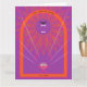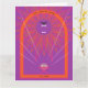Un León geométrico de la tribu de Judá ruge mientras el niño Jesús en un pesebre levanta sus manos.
