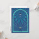 Un León geométrico de la tribu de Judá ruge mientras el niño Jesús en un pesebre levanta sus manos.