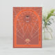 Un León geométrico de la tribu de Judá ruge mientras el niño Jesús en un pesebre levanta sus manos.