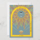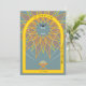 Un León geométrico de la tribu de Judá ruge mientras el niño Jesús en un pesebre levanta sus manos.
