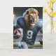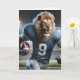 Un león con uniforme de fútbol de las 9° se enfrenta a un campo iluminado, sosteniendo un fútbol con determinación y energía. Se puede cambiar el texto interior.