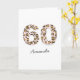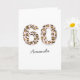 Sencilla, elegante y de moda impresión de leopardo de 60 años tarjeta de saludo con estampado de animales marrones y negros sobre un fondo rosa pálido. El nombre y el mensaje interior en escritura moderna se pueden personalizar fácilmente para una tarjeta de cumpleaños número 60 verdaderamente única para el día especial de tu ser querido. El diseño también está disponible para otros cumpleaños importantes.
