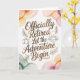 Celebrate a well-deserved retirement with this elegant watercolor greeting card featuring the hand-lettered quote “Officially Retired – Let the Adventure Begin.”