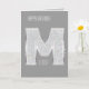Falso encanto del purpurina del monograma gris de plata de la letra M personalizado con la tarjeta de cumpleaños conocida