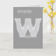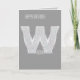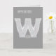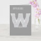 Tarjeta de cumpleaños personalizada con nombre y monograma gris de letra W plateada con brillo