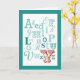 El alfabeto está en la parte delantera de esta tarjeta con una letra resaltada en rojo. En este funda, la letra "Y" representaría la primera letra de un nombre. Envíe esta tarjeta a un celebrante de cumpleaños cuyo nombre comience con "Y".