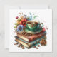 Tarjeta Libros antiguos, flores y café