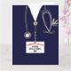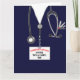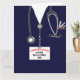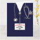 Tarjeta de graduación médica personalizada con exfoliaciones hospitalarias y un cuchillo del ejército suizo en el bolsillo. Editar texto para agregar el nombre del médico.