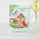 This hand-painted watercolor features a charming birdhouse adorned with a Happy Birthday banner, as a tufted titmouse and a cardinal stop by on a crisp January winter day. Soft seasonal details and gentle colors create a warm, thoughtful scene, making it a lovely birthday piece for a life partner who celebrates in January.