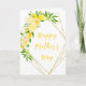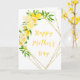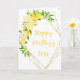 Esta divertida y caprichosa tarjeta del Día de la Madre se puede personalizar con un nombre o título como mamá, mamá, mama, etc. El diseño presenta cítricos de limones y follaje de acuarela en un marco geométrico dorado. El texto combina fuentes manuscritas y serif para un aspecto elegante y moderno.