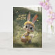 Esta adorable tarjeta de Pascua presenta un conejito bebé de ojos brillantes con un vestido amarillo, que lleva una corona de flores de margarita y una canasta de huevos coloridos. Rodeada de suave vegetación primaveral y mariposas revoloteando, la obra de arte tiene un encanto cálido y caprichoso de libro de cuentos perfecto para celebrar la temporada. Ideal para niños, familias y cualquiera que ame diseños dulces y alegres de Pascua. Impresa en cartulina premium para un hermoso recuerdo de temporada.
