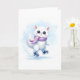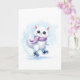 Tarjeta Lindo gatito blanco de invierno patinando sobre hi