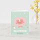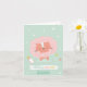 Tarjeta de bienvenida adorable con león rosa, estrellas, biberón, imperdibles en patrón de puntos menta