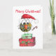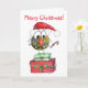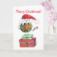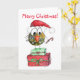 Esta es una pintura original de medios mixtos de un pájaro de Navidad sobre una pila de regalos.