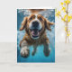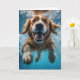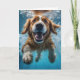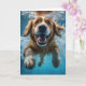 Lindo perro nadando en agua azul clara en esta tarjeta de felicitación en blanco.