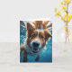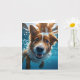 Tarjeta Lindo perro marrón y blanco bajo el agua nadando e