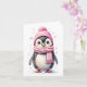 Tarjeta Lindo pingüino con sombrero y bufanda rosados tarj