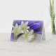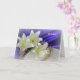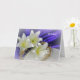 Lirios blancos de Pascua y corona de espinas sobre una Santa Biblia abierta y tela de satén púrpura.