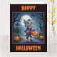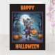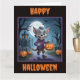 Un pequeño y lindo hombre lobo está listo para Halloween en esta divertida y espeluznante tarjeta de Halloween. Añade tu propio texto personalizado.