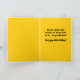 Llama guapa con un gorra fiesta en un contexto festivo de cumpleaños. La tarjeta dice: "Tu tarjeta se ha llamado. ¿Lo entiendes? El interior dice: "Si se derrama una bebida o se deja la comida... ¡no hay problema! ¡Feliz cumpleaños!" Más juego con la palabra llama. ¡Por todos ustedes amantes de la llama!