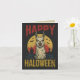 Presentamos una espeluznante tarjeta de saludo de Halloween con una maliciosa llama con una sonrisa diabólica. Perfecto para enviar deseos de temporada espeluznante a amigos y familia, esta tarjeta le dará un toque de diversión y miedo a su día. El diseño de inspiración vintage, con luna llena y sangre goteante, crea un ambiente espeluznante y encantador. ¡Esta tarjeta es imprescindible para cualquier amante de Halloween!