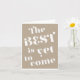 Aclarar el día de alguien con una nota escrita a mano. Esta tierna tarjeta presenta lo mejor que está por venir impreso en una letra en negrita blanca resaltada contra un fondo de cartón marrón. El interior de la tarjeta está en blanco para tu mensaje personal.