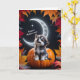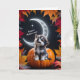 Tarjeta Lobo blanco lindo con luna creciente noche de otoñ
