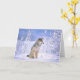 Tarjeta Lobo de madera que se sienta en la nieve, lupus de