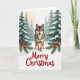 Tarjeta Lobo en la nieve, la carta navideña de navidad en