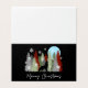 Tarjeta Lobos aullando en el bosque Feliz Navidad árboles
