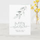 Guión del logotipo de la Compañía de Foliage moderna para navidad. Estilo contemporáneo con mucho espacio en blanco, En el frente, Feliz Navidad está en un guión elegante y el resto del texto dentro y fuera se puede personalizar fácilmente, Adentro, reemplazar la imagen de ejemplo con el logo de su negocio o eliminarla si se prefiere. En la parte superior hay un estropajo artístico de hojas blancas de invierno y azul en polvo suave en la parte delantera y en el interior se coordina el azul en polvo. Los colores del texto y del fondo se pueden cambiar si se desea adecuar mejor a su imagen y marca a través de la opción personalizar.