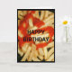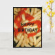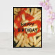 Una fotografía de armario de papas fritas doradas, cubierta de ketchup, es el tema de mi tarjeta de cumpleaños "Feliz cumpleaños - ¡los años nunca parecen ser para ti!".