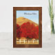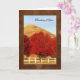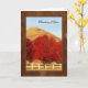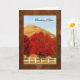 Los saludos de un otoño que piensan en usted cardan con las palabras, "pensando en usted" en el frente. Usted puede añadir un tacto personal al personalizable dentro del verso que lee: Pues los días crecen fríos, los pensamientos de usted calentarán mi corazón. La imagen delantera es una fotografía de árboles hermosos con las hojas rojas vibrantes que alinean una cerca blanca del país con una montaña de Utah del desierto en el fondo.