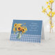 Celebra la sabiduría y la gracia de una querida bisabuela en su día especial con esta encantadora tarjeta de cumpleaños. Decorada con un pintoresco frasco de albañil rebosante de girasoles y delicadas flores azules polvorientas, con un fondo de cheque de gingham intemporal, esta tarjeta irradia calor y afecto. Adentro, transmitir los sentidos deseos de cumpleaños a una notable bisabuela cuyo amor y presencia son apreciados por generaciones.