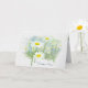 Cierre de margaritas blancas en pradera campestre con marco acuarela para pensar en usted.
