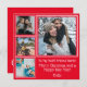 Collage moderno de fotos en rojo y blanco con una foto grande y 3 pequeñas con Navidades de personalizable y mensaje de Año Nuevo para tu mejor amigo! La parte trasera de la tarjeta tiene el mismo fondo rojo y el mismo personalizable ¡Que todos tus deseos sean verdaderos! Crédito de la foto: Nathan Dumlao, Jed Villejo y Hamil Tajik de Unsplash, ¡gracias!