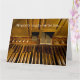 Un tablero del pedal del órgano, con los zapatos de la inflamación y el rollschweller, con las palabras en blanco sobre el top: Los "organistas tocan con la punta del pie generalmente la línea…". En el interior las palabras: "… pero en su cumpleaños, usted puede utilizar sus talones también!" Un juego en el hecho de que los organistas utilicen sus dedos del pie para jugar con (y los talones, si es posible!)