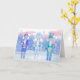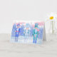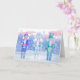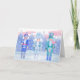 Tres exultantes petardos, con regalos encantados de la temporada invernal, se visten con vestimenta regal en medio de un bosque de color pastel besado por las heladas. Ilustracion original de la artista Noël Snow. Inside of card dice: "Feliz Navidad" en alemán.