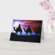 Los tres Reyes Magos en su viaje en Nochebuena a Belén, donde José y la Virgen María están dando a luz al niño Jesús. Dentro de la tarjeta: "He aquí, os traigo nuevas de gran alegría, que serán para todos. Porque hoy os ha nacido en la ciudad de David un Salvador, que es Cristo el Señor."
