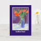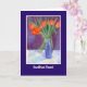 Un bonito Get Well Card con el saludo en galés y un jarrón azul de Scarlet Tulips, de un pintura pastel de aceite de Judy Adamson.