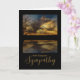 With Deepest Sympathy on the loss of your son. Digital painting of a sunset reflected in a lake and a silhouette of a tree on the left hand side. Dramatic card for your expressions of sympathy. Art, image, and verse copyright Shoaff Ballanger Studios, 2025.