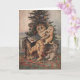 La 'Navidad en Catland' de Louis Wain presenta una ilustración vintage de una gata madre que trae galletas a sus gatitos con un árbol de Navidad en el fondo. Esta es una imagen conmovedora que hará sonreír al destinatario. El texto interior dice "Feliz Navidad" en letra cursiva.